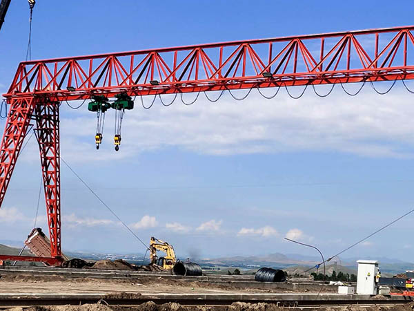 Mh型桁架電動葫蘆門式起重機是中小型可帶懸臂的簡易門式起重機,電動葫蘆采用CDI、MDI等形式,主梁角鋼或是槽鋼與工字鋼焊接而成的組合梁,大車運行機構采用三合一驅動裝置。其適用起重量為3-16t,適用跨度為10-26米,工作環境溫度在-25-+40℃范圍內。其結構簡單、安裝、使用、維修方便,多用于工廠、貨場、碼頭、水電站等頻度低或額定起重量起吊次數少的場所。有點:貨期快、經濟實惠;缺點:使用中晃動相對較大、工作級別低,不適用繁重場合。本起重機設有地面、操縱室和遙控三種操縱形式以供用戶選擇使用。