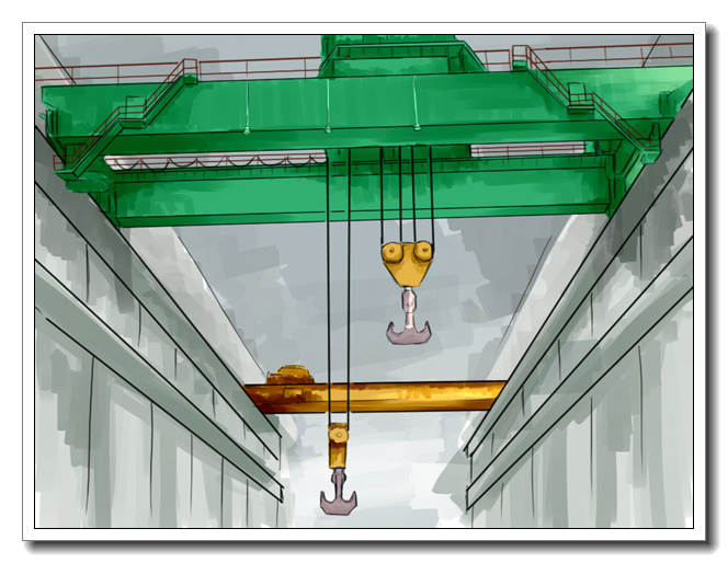 起重機(jī)工作級別A3~A7,常用起重量為3~250t。適宜在環(huán)境溫度-20℃~40℃,相對濕度不大于85%的工廠、倉庫及貨場等處作裝卸吊運(yùn)工作,禁止在易燃、易爆以及充滿腐蝕性氣體的環(huán)境中工作。