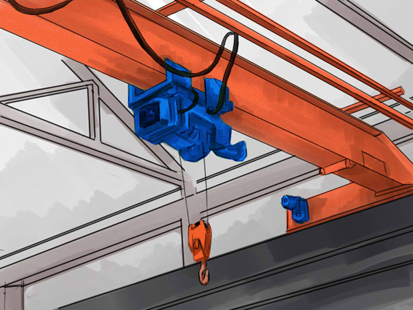 LDP型電動單梁起重機(jī)主梁采用箱型體主梁,偏軌形式,特制的電動葫蘆小車配套使用,特制電動葫蘆小車多采用與CD1,MD1等電動葫蘆。LDP型電動葫蘆采用偏掛形式,在主梁一側(cè)運(yùn)行,葫蘆位置由傳統(tǒng)的主梁下提升到主梁上側(cè),有效提高了起升高度。小車運(yùn)行為錐型電機(jī)制動,開式齒輪傳動。主梁為箱型結(jié)構(gòu),偏軌,上、下設(shè)水平輪,安全可靠,并可防止啃軌。